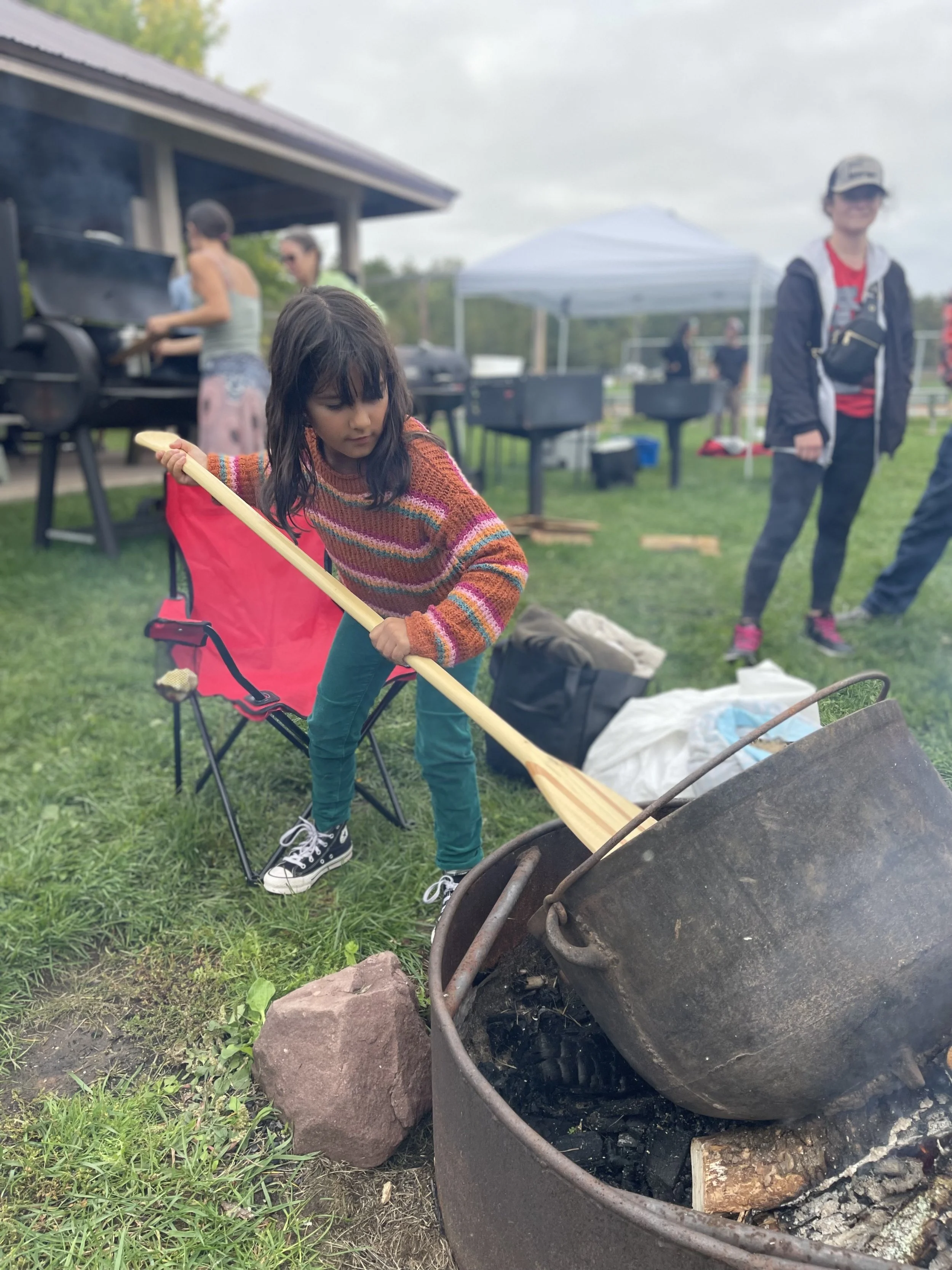 Harvest camps, community gatherings, teachings, storytelling, curriculum partnerships, and seasonal workshops.