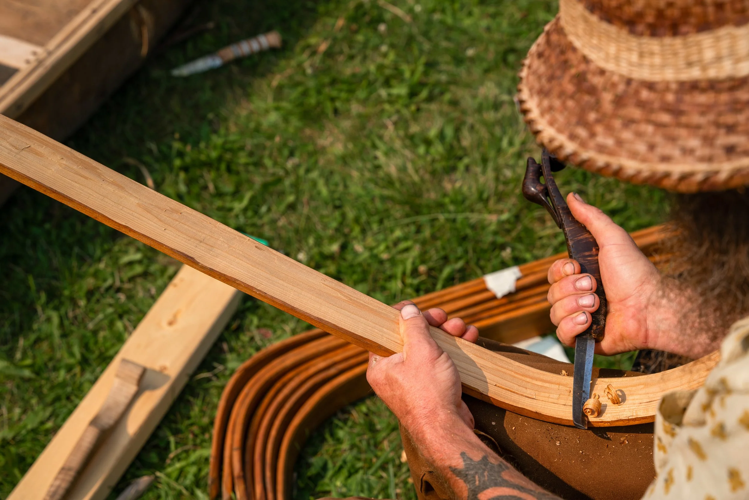 Elm bark lodges, maple sugar bush structures, community learning spaces, bark houses, and Indigenous-designed architecture.Canoe Building & Waterway Knowledge